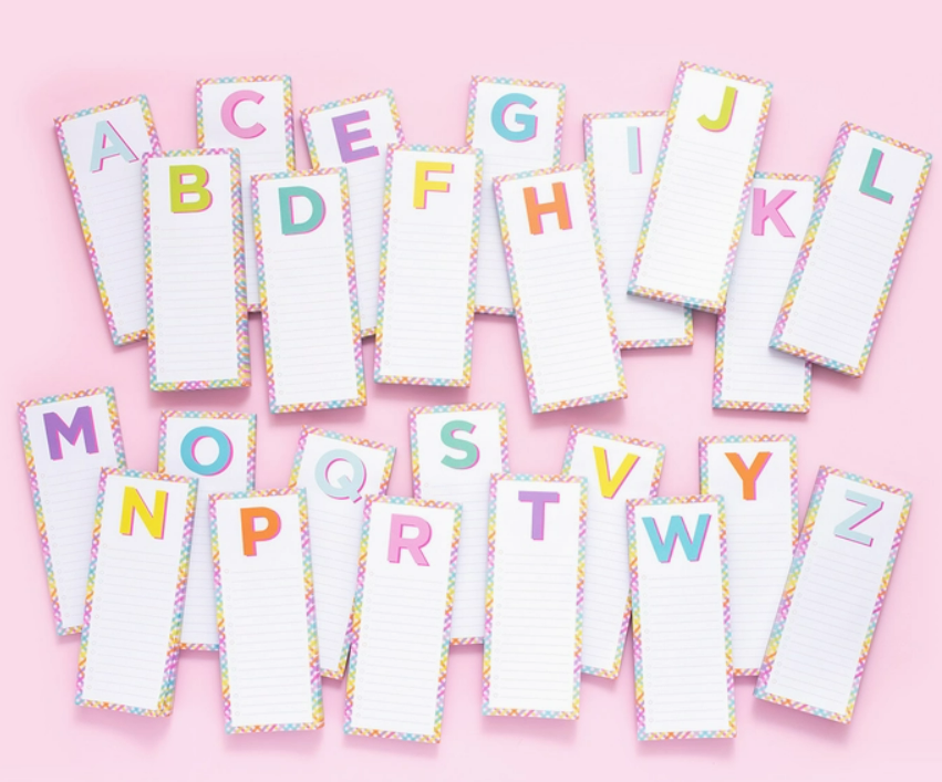 Our unique Letter List Pads combine functionality with personalization. Each notepad comes with a distinct letter at the top and a colorful border, adding a touch of individuality to the note-taking experience, and a magnet on the back to pop it right on your fridge.